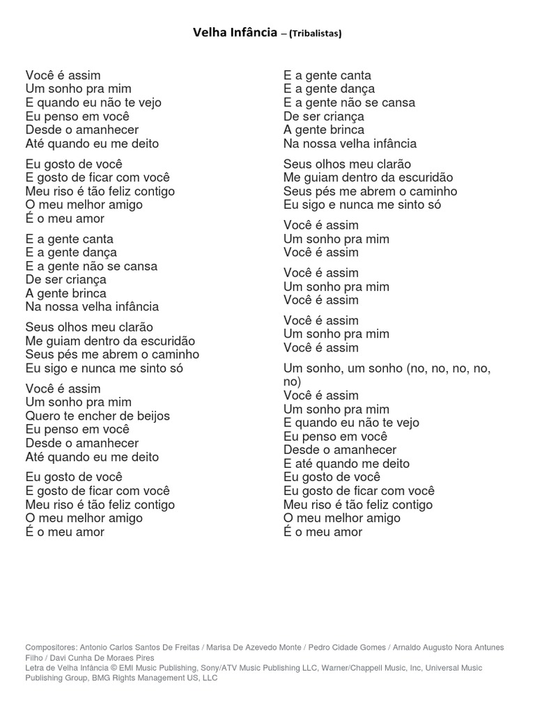 Tribalistas Velha Infancia Baixar A Musica - Baixar Musicas Download Velha Infancia Mp3 : Aprenda a tocar a cifra de já sei namorar (tribalistas) no cifra club.. Já sei namorar / já sei beijar de língua / agora só me resta sonhar / já sei onde ir / já sei onde ficar / agora só me falta sair / não tenho paciência pra televisão / eu Aprenda a tocar a cifra de velha infância (tribalistas) no cifra club. E a gente canta / e a gente dança / e a gente não se cansa / de ser criança / a gente brinca / na nossa velha infância. Aprenda a tocar a cifra de já sei namorar (tribalistas) no cifra club.